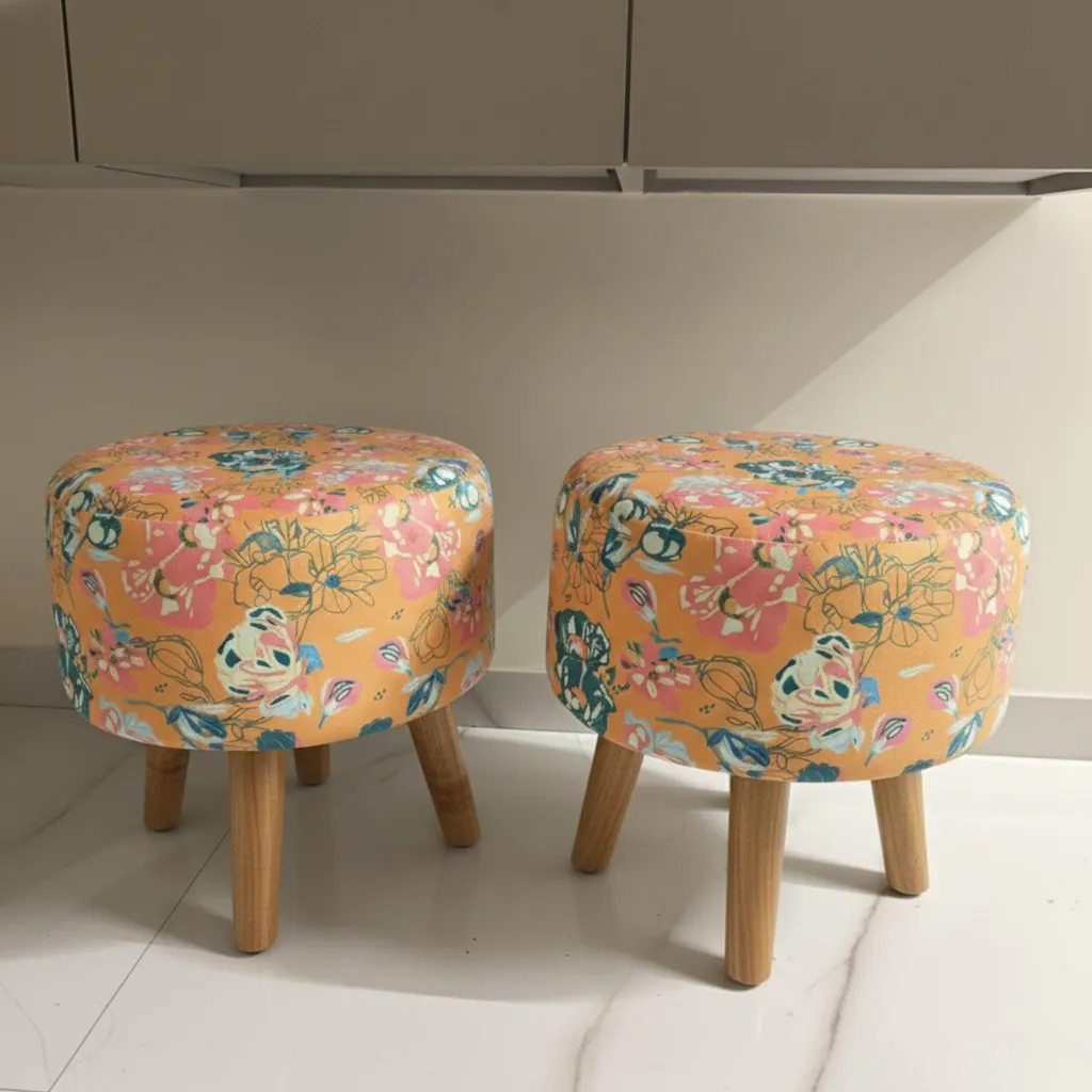 Premium Quality: Made with a super-soft printed fabric cover, high-density foam cushioning, and a solid mango wood base for long-lasting durability.