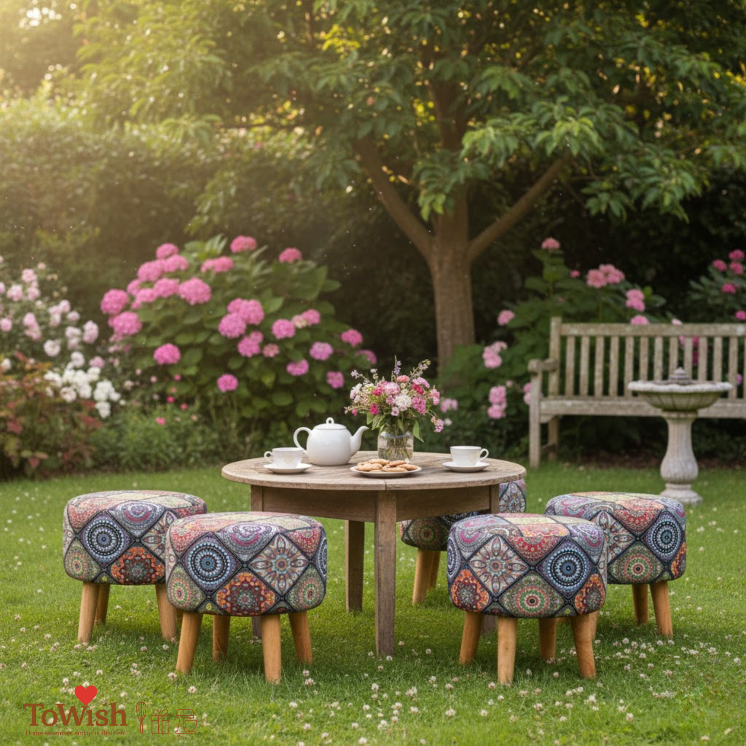 Premium Quality: Made with a super-soft printed fabric cover, high-density foam cushioning, and a solid mango wood base for long-lasting durability.