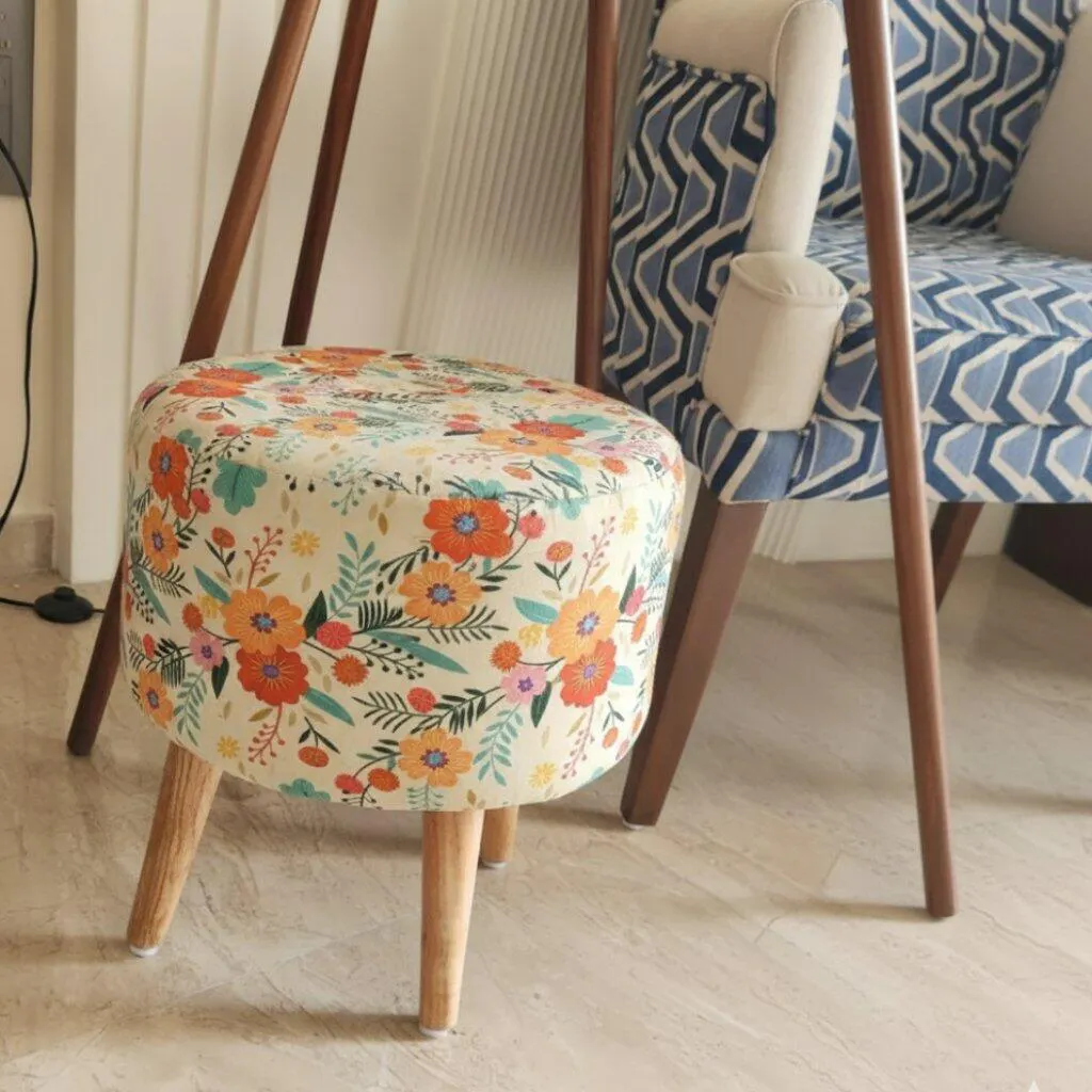 Premium Quality: Made with a super-soft printed fabric cover, high-density foam cushioning, and a solid mango wood base for long-lasting durability.